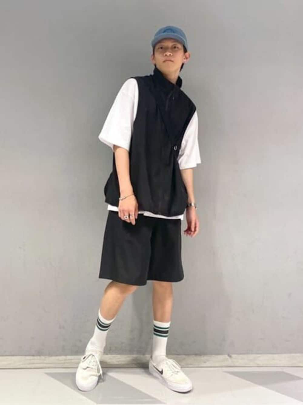 新作のナイロンベストとナイロンショーツコーデ! 今年はこのファッションが流行る気がする! ナイロン素材は着まわししやすいしかっこいい! ショーツは今年の夏のトレンド!!! おすすめ!!!!