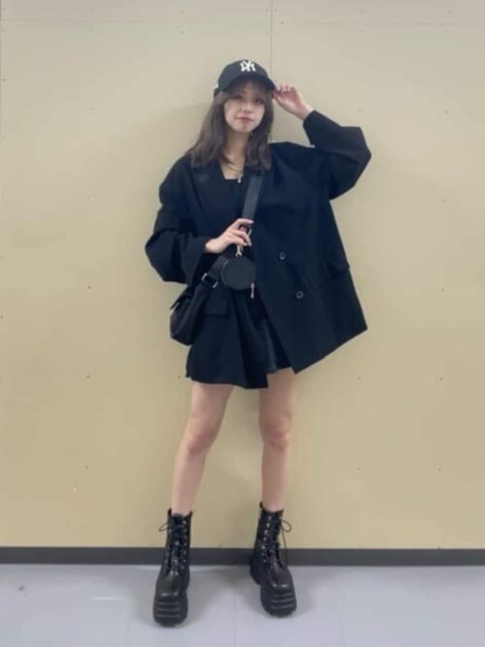 キレイめオールブラックコーデ!🥀🖤 ベルト付デニムプリーツスカパン(F)×ボリュームレースアップショートブーツ(M)固定の着回しコーデ! TRルーズテーラードジャケットはシンプルなキレイめコーデにぴったりのアイテムです♛︎ 重くなりすぎない素材なので着用しやすい! 丈感があるのでショート丈のアイテムとの相性抜群です♡̷̷̷⋆。˚