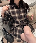 メンズシャツを使ったコーデ! 厚底ブーツとデニムミニスカートを合わせて、春らしくカジュアルに♪