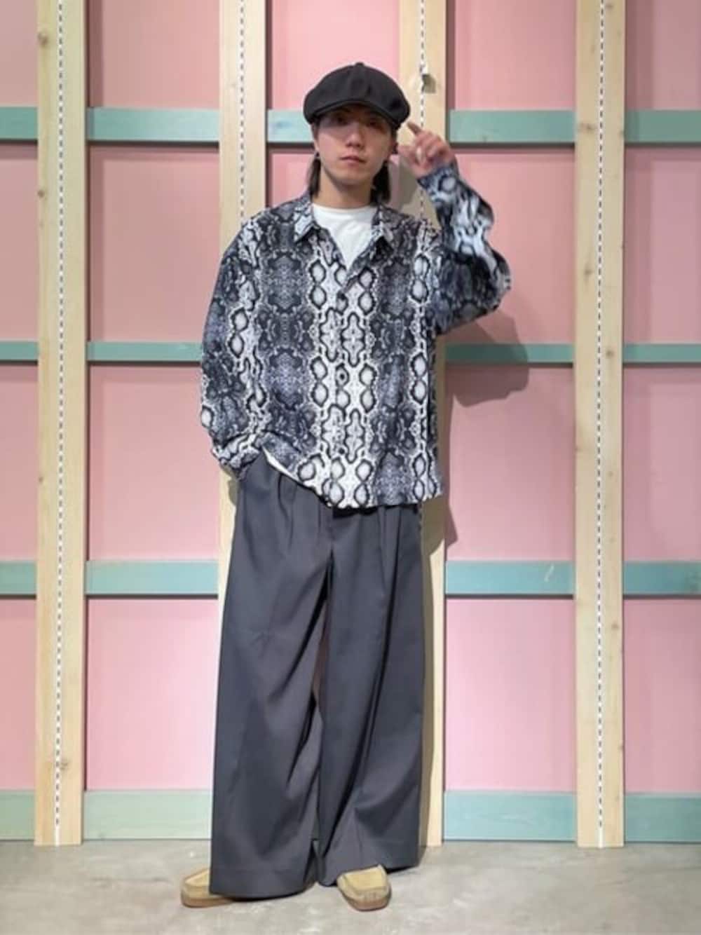 総柄のアムンゼンプリントシャツを使った モードカジュアルコーデです!!