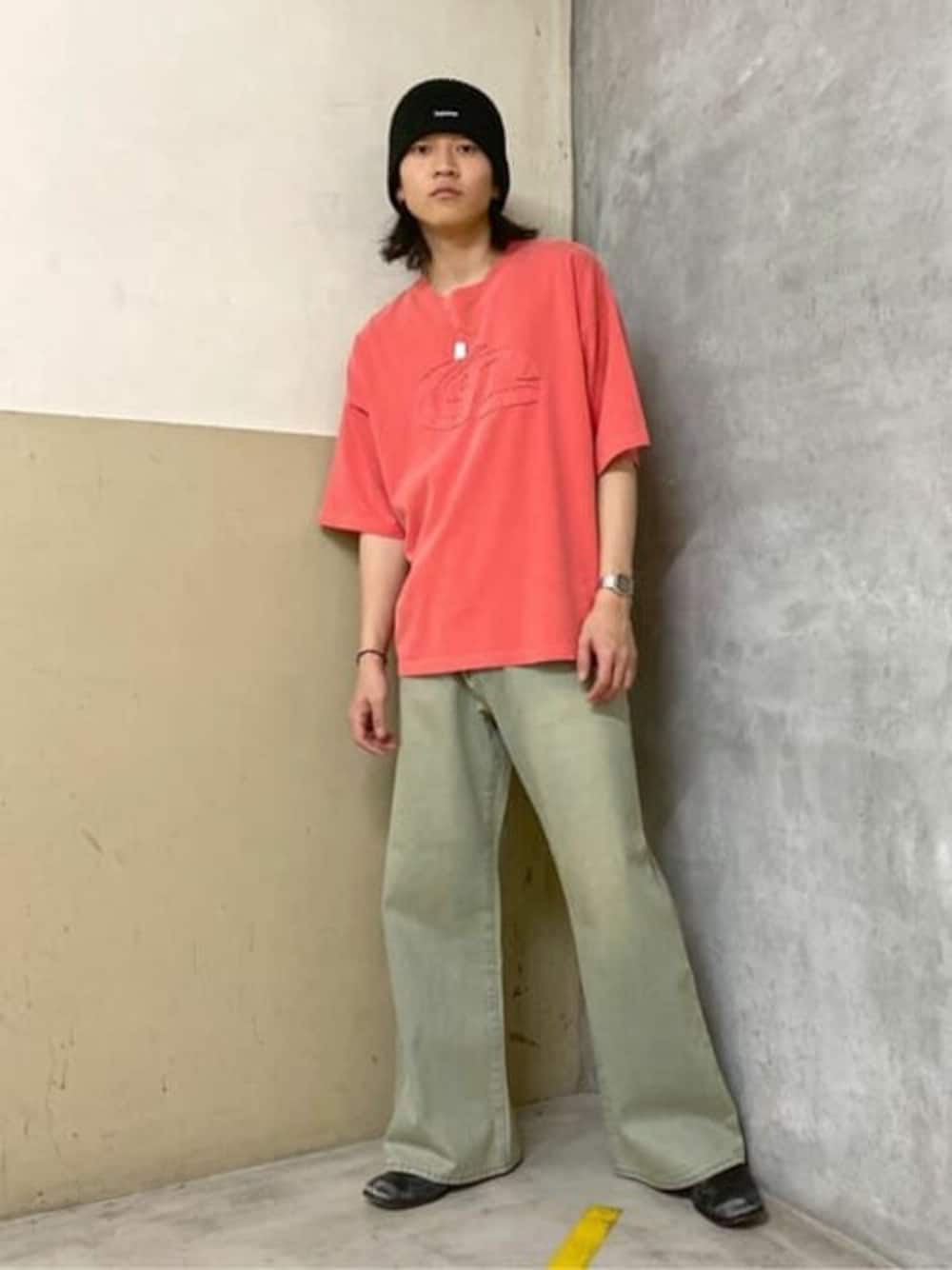 WEGO(WEGO STAFF)のTシャツ/カットソー「WEGO/ピグメントダメージアップリケT」を使ったコーディネート