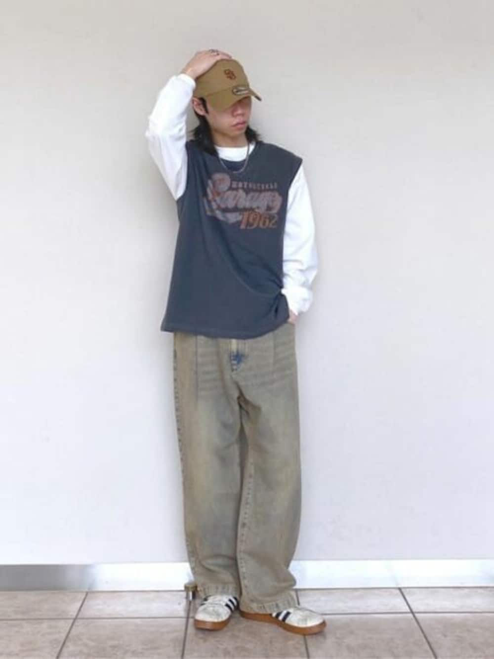 ブラウンカラーやスケータースタイルにもマッチするグラフィックロンTがいい感じ! 一枚で主役になる存在感溢れるデザインで、着回し力も抜群です◎