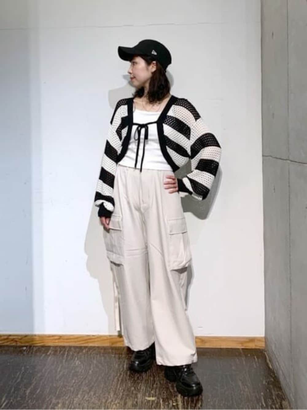 トロミカーゴスラックスは、トロミ感のある柔らかな生地で、カジュアルガーリーコーデにぴったりです☺︎♡ インナーのキャミソールは2つのストラップデザインで、春コーデにぴったりなメッシュトップスと合わせるのがおすすめです◎ メッシュリボンボレロは、メッシュ素材で軽やかな着心地です♪ ワンピースやパンツスタイルにも合わせられる、着回し抜群アイテムです!