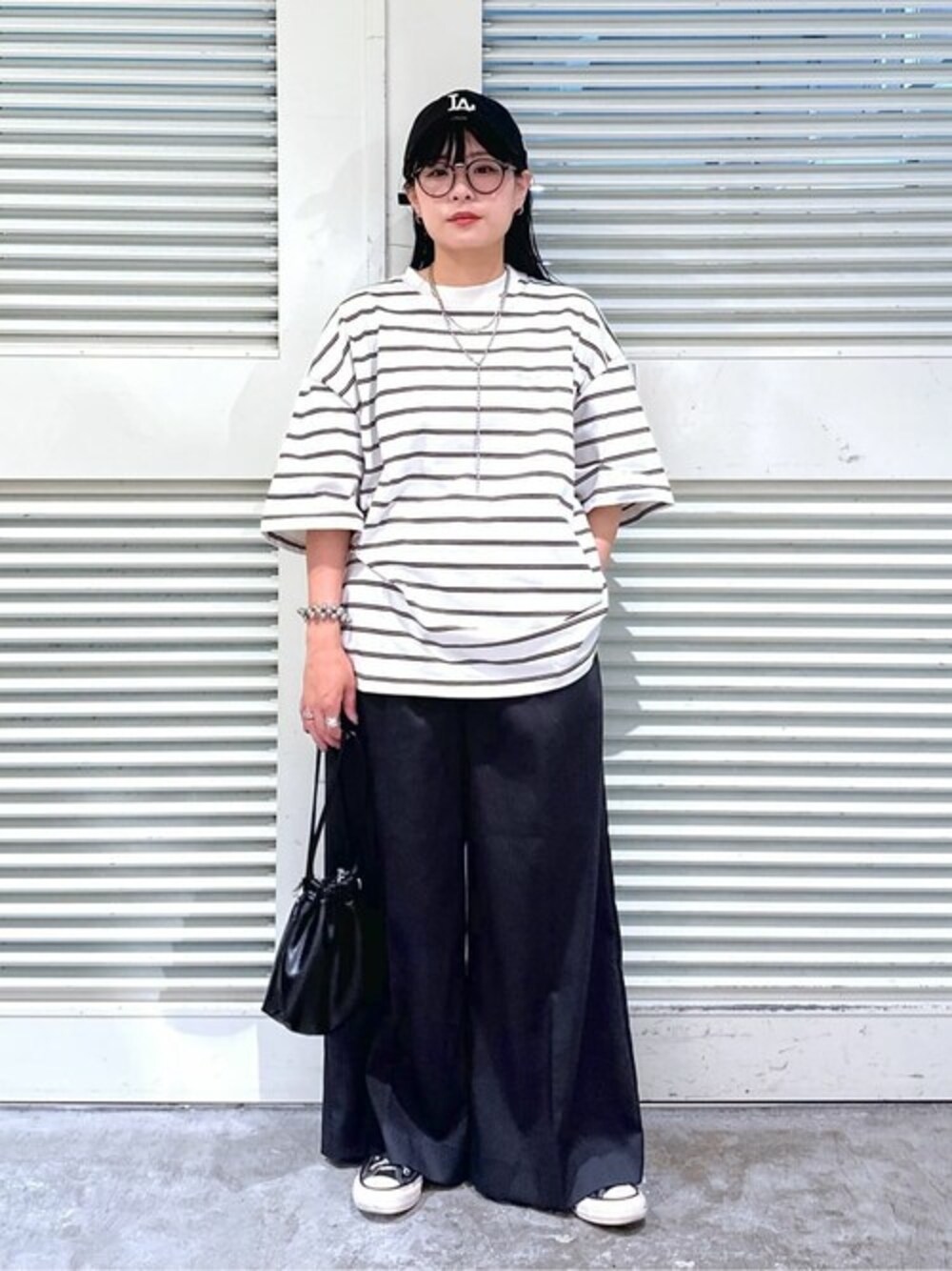 ボーダーTシャツがポイントの大人カジュアルコーデ✔️