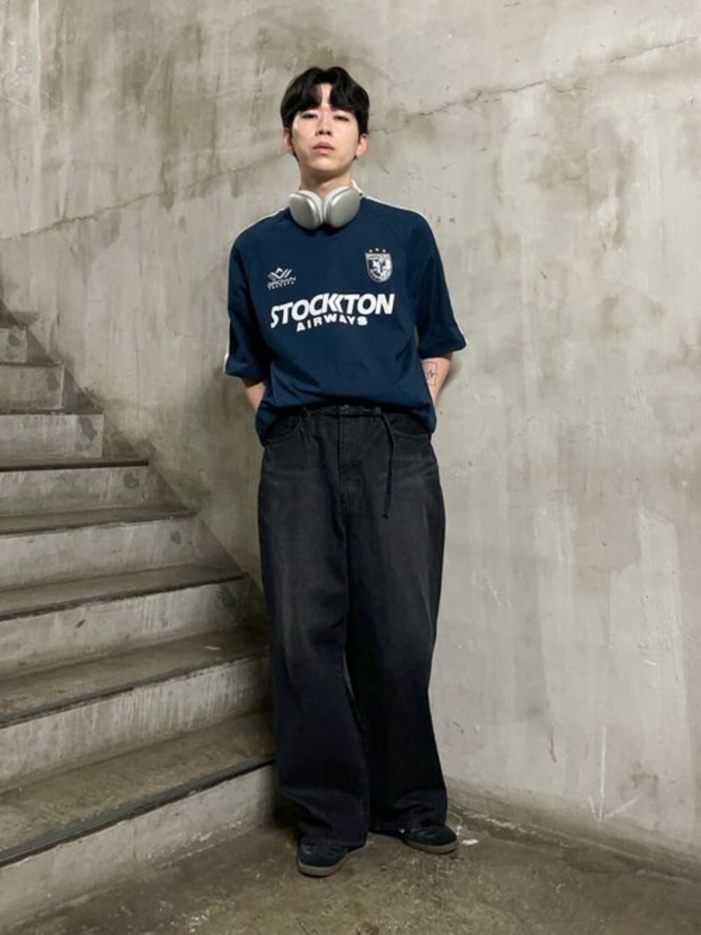 ネイビーとブラックデニムの組み合わせが暗めだけどトーンが合ってて◎