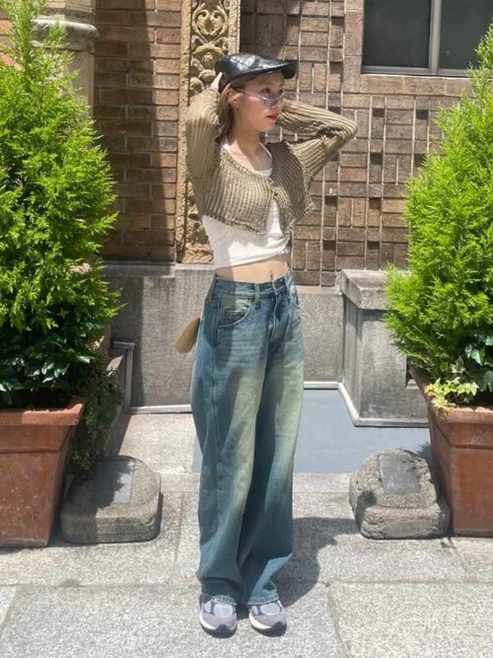 インナーとセットのメッシュトップスなので悩むことなく着れます!風通しも◎ デニムはハイウエストだからスタイル◎に見えます!