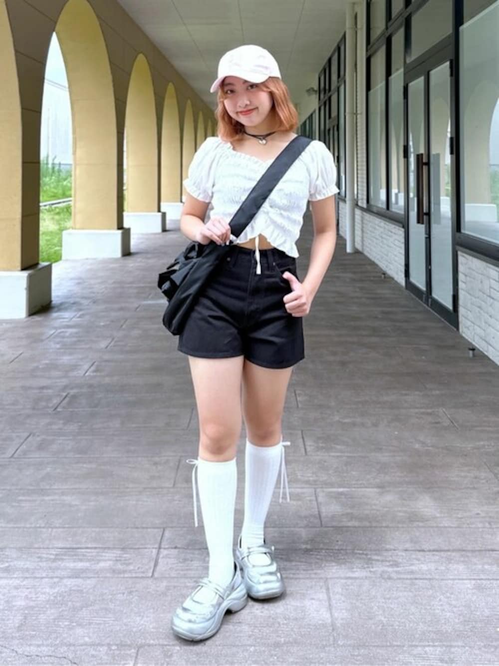 ガーリーコーデ🎀💕 バッグと帽子と靴下にはリボンがついていてとっても可愛い!