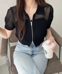 カーディガンはダブルジップのデザインが可愛い!メッシュ素材なので夏にぴったり!
