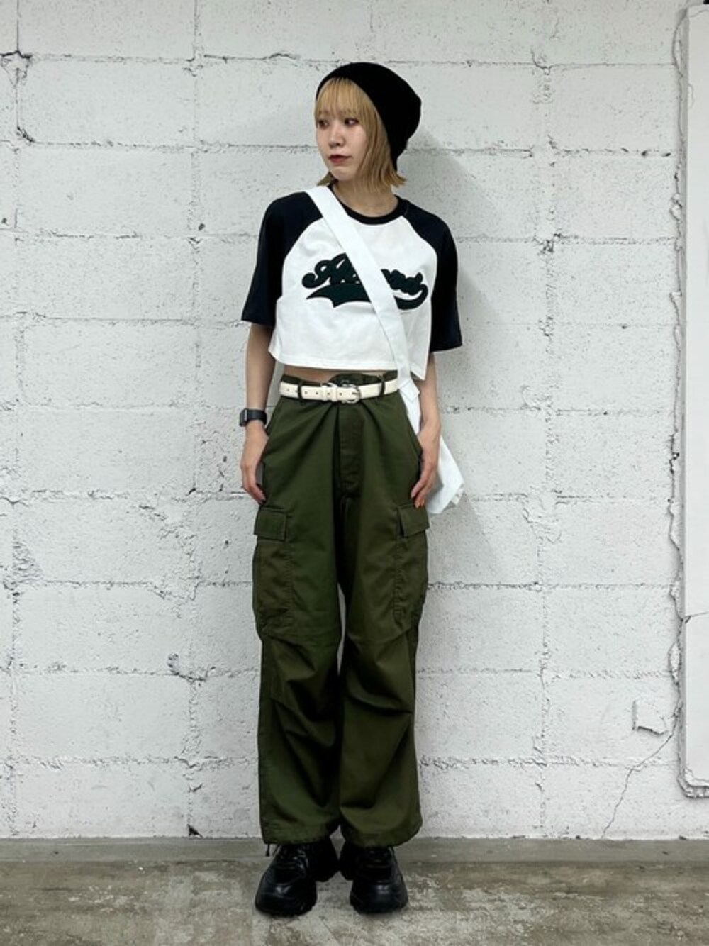 トップスはショート丈なのでどんなボトムスとも合わせやすいです◎ パンツはメンズのアイテムですがSサイズから展開があるので女の子も着れちゃいます!