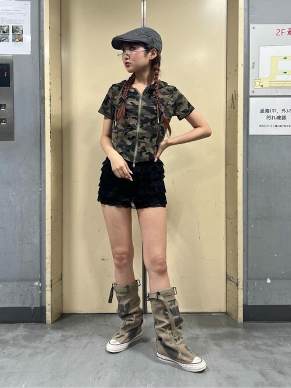 韓国グランジコーデ❤︎ 全体的にアースカラーで合わせて、統一感! 全部グランジなアイテムで合わせるのではなくて、ガーリーなアイテムを組み合わせるのが今のトレンドっぽい!◎ パーカーアイテムは、今年の夏必須で取り入れたいアイテムです!