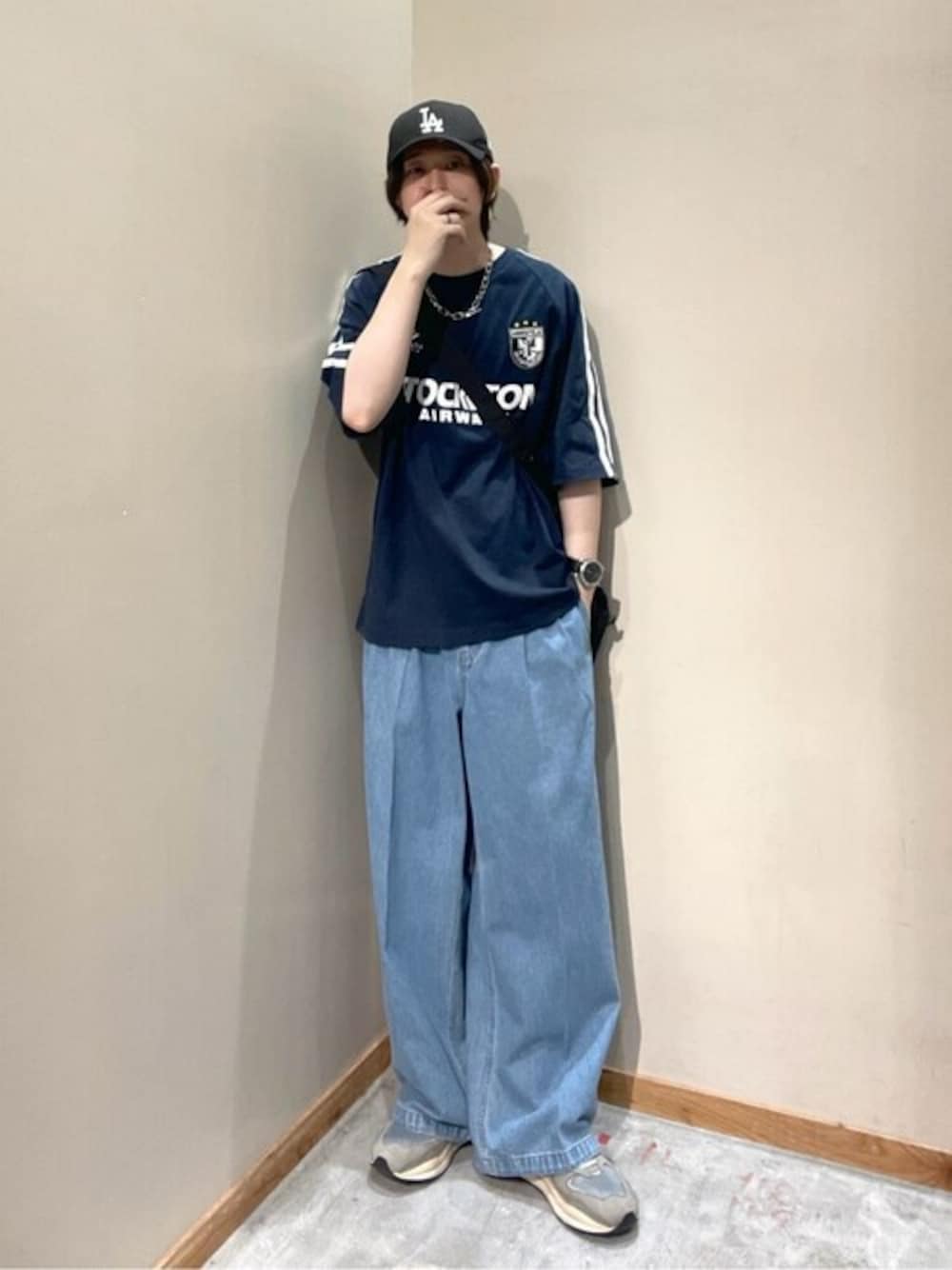 今年トレンドのゲームTは特にネイビーがオススメ。 ゲームT×ダボパンが間違いない。