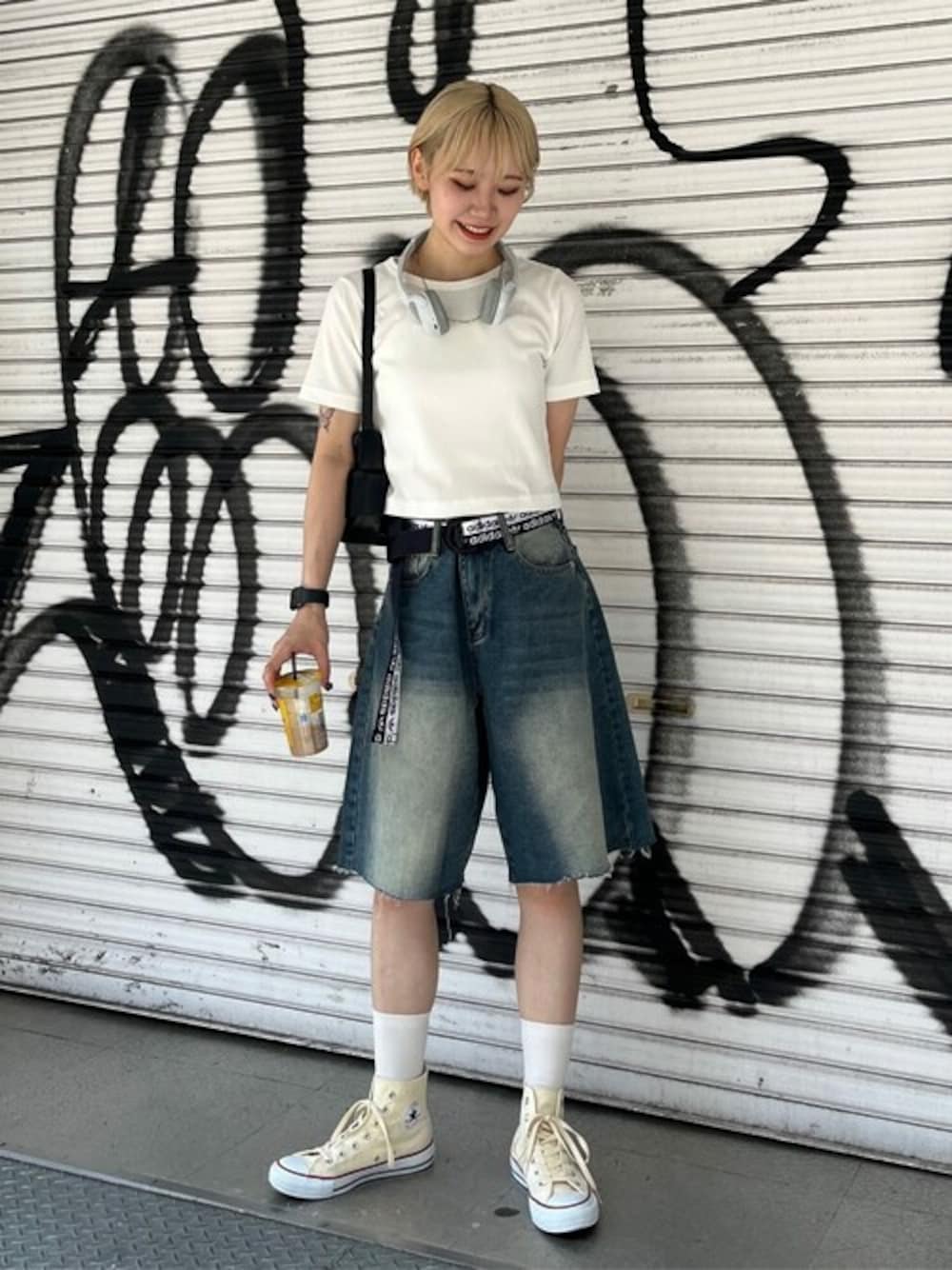 WEGO(WEGO STAFF)のデニムパンツ「DISPARK/ウオッシュドデニムハーフパンツ」を使ったコーディネート