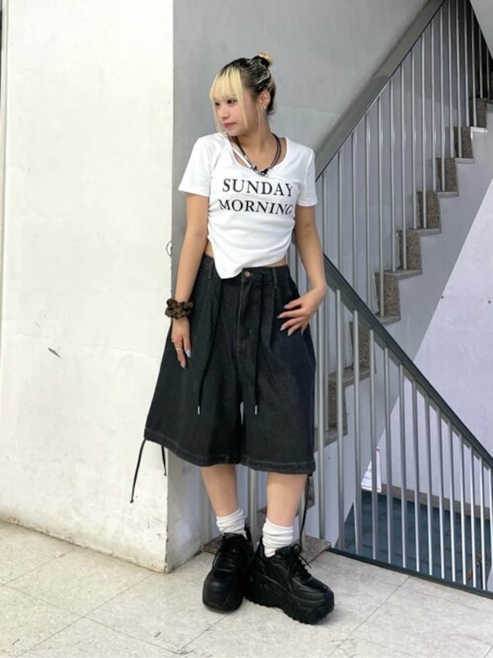 WEGO(WEGO STAFF)のTシャツ/カットソー「DISPARK/ストラップ付きデザイントップス」を使ったコーディネート