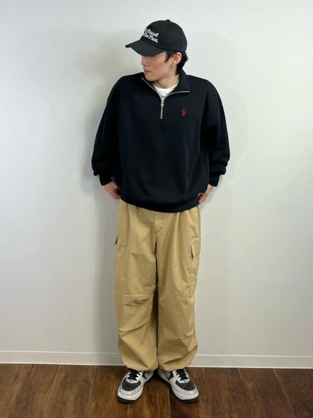U.S.POLO ASSN. ハーフZIPプルオーバーを使った秋冬ストリートコーデ! ハーフZIPプルオーバーは、さまざまなジャンルのコーデに使える万能アイテムです! カーゴパンツ以外にもデニムパンツ、スラックスなどと合わせても◎ カラーバリエーションも豊富なので自分の好きな色を探してみてください!