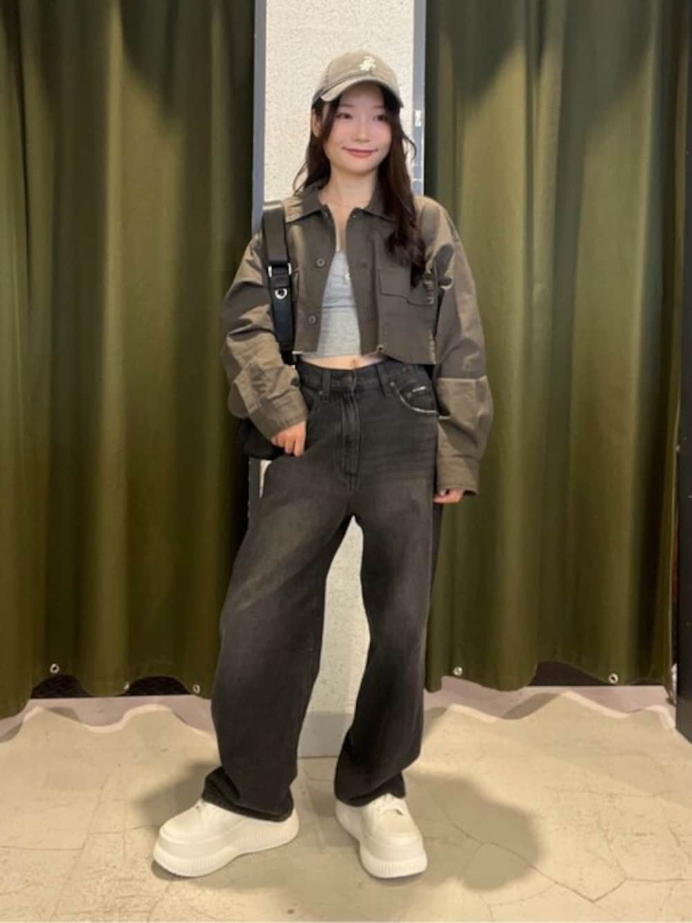秋大活躍のカーキシャツ♡ ショート丈が今っぽくて可愛い! ルーズなパンツと合わせるのがオススメです🥰
