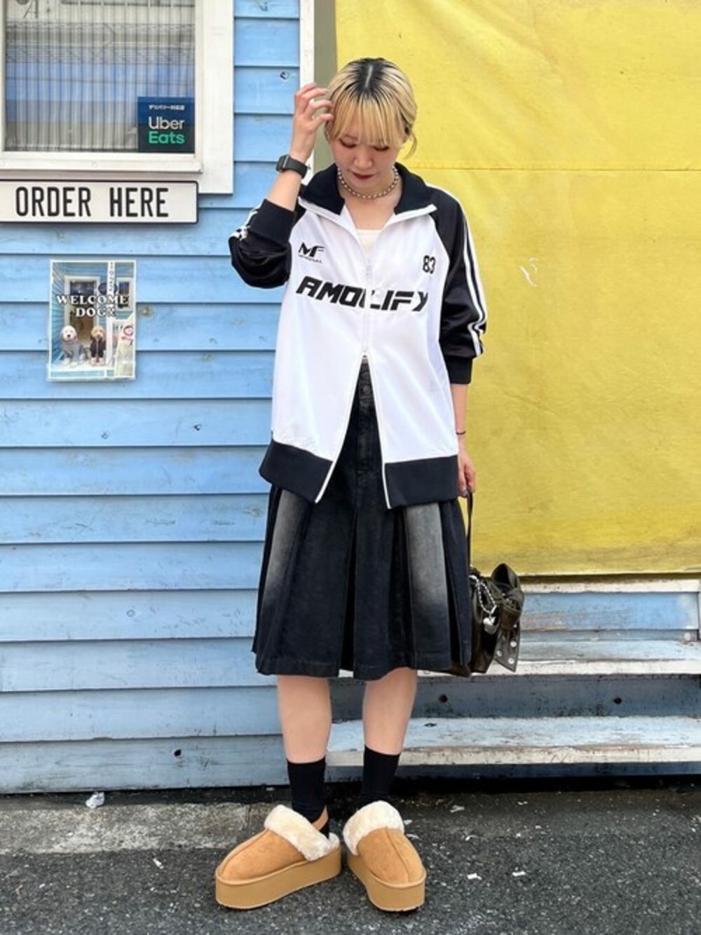 秋のモノトーンコーデ♡ トレンドのトラックジャケットとミドルスカートでカジュアルにしてみました!