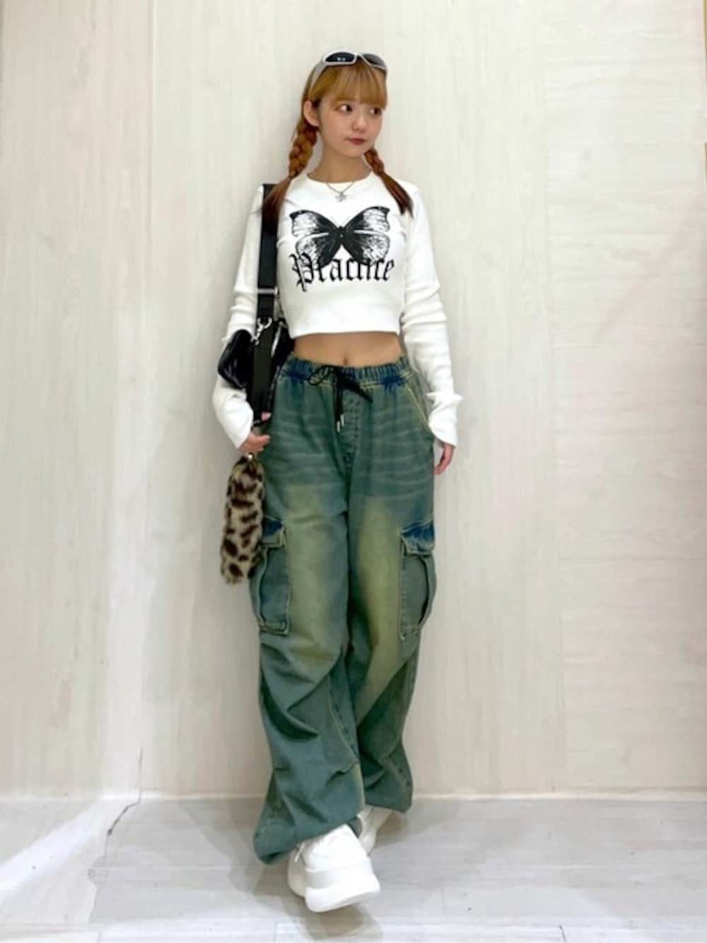伸縮性の高いカーゴパンツとリブロンT!! 少し肌寒いこの季節にぴったりです♡