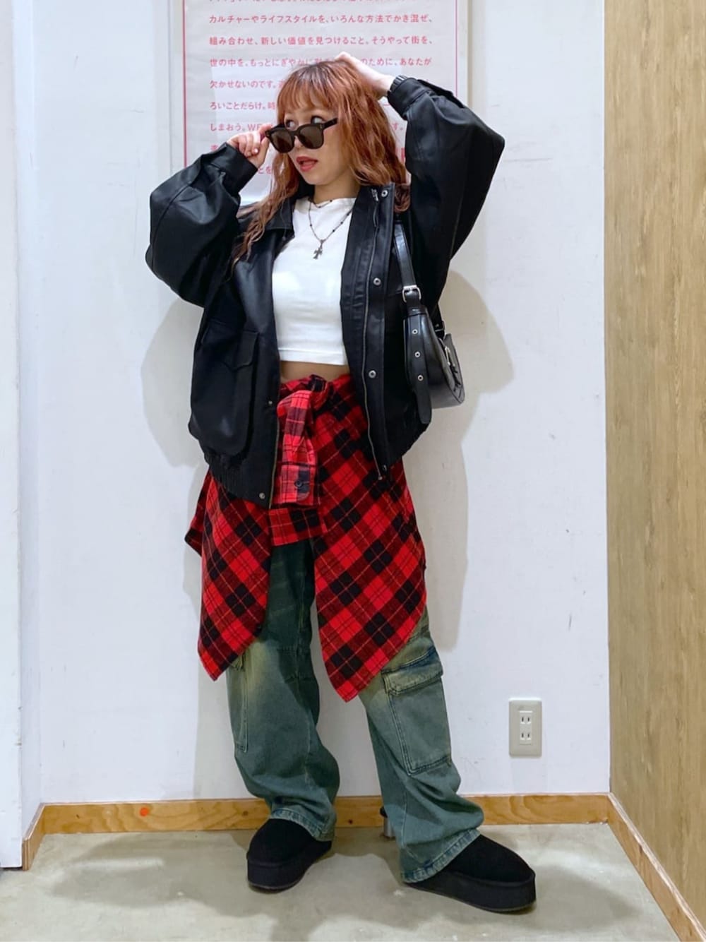 ♦︎アメカジコーデ♦︎ 【153㎝・48㌔】 ・ジャケット→Sサイズ ・ボトムス→Mサイズ ・ブーツ→Mサイズ ネルシャツの差し色がお洒落‼︎ レザージャケットはメンズアイテムですが、レディースの方にもオススメ。秋もショートTで肌ちらも、忘れずに!