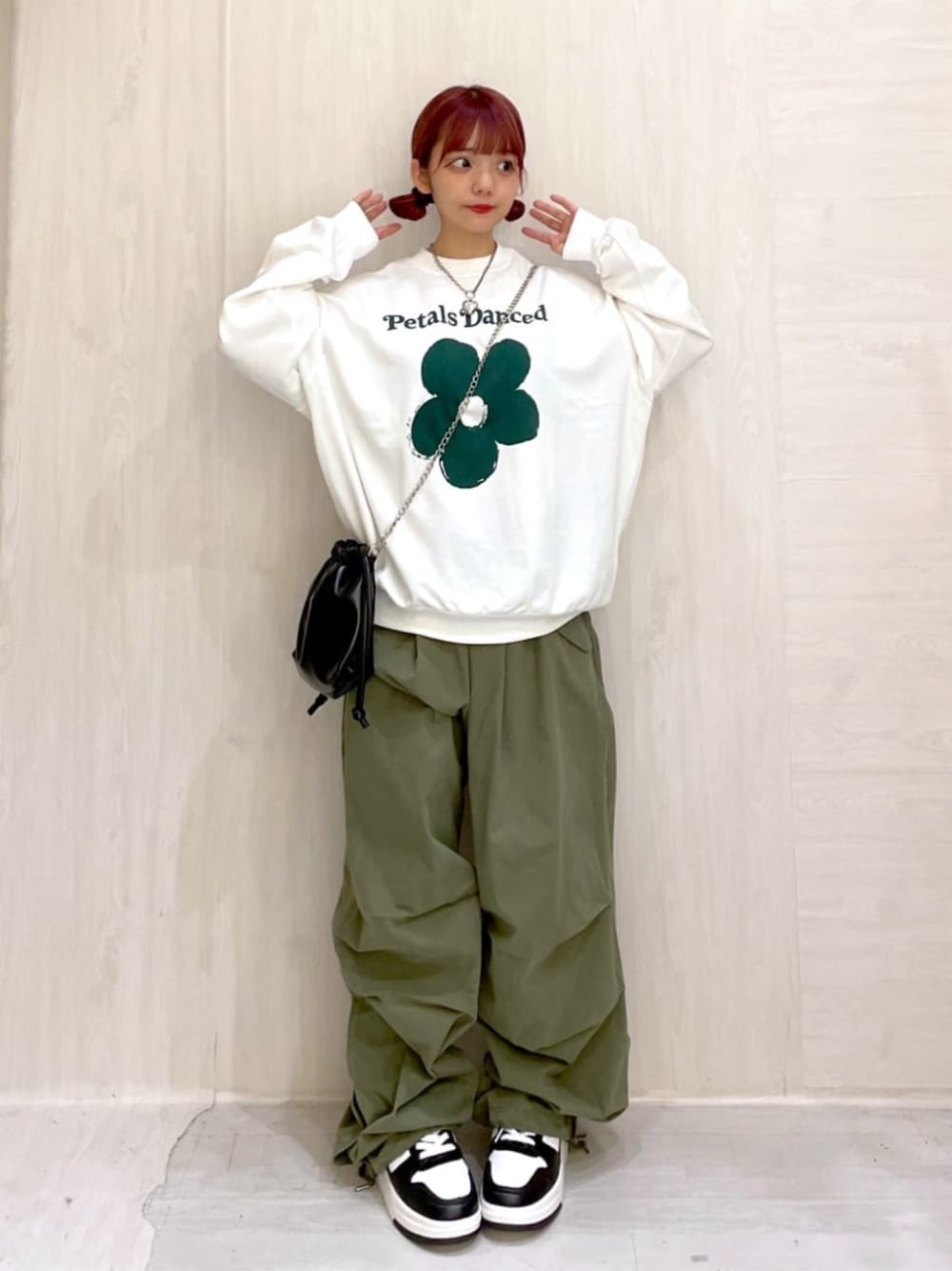 緑で統一したストリートです! ユニセアイテムなのでぜひ⭐︎ スウェットはS〜Lまで! ボトムスは大きめシルエットですが、裾も絞れるので、低身長の私でも気軽に履けるボトムスで、おすすめです٩( 'ω' )و