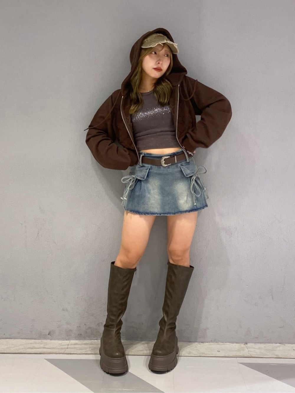 気分は韓国アイドル🇰🇷🎶ギャルコーデ🦋 ブラウンパーカーはギャルのマストアイテム🤎