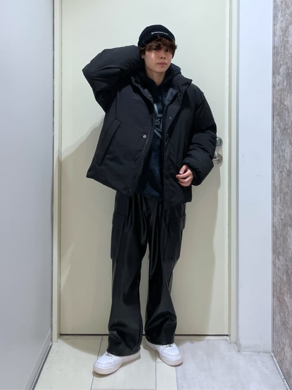新作のショートパディングブルゾンとスノーダイグラフィックビッグパーカー、エコレザーカーゴスラックスを合わせたコーデです!! 『ショートパディングブルゾン』は冬にピッタリのブルゾンで、カジュアルに着こなすことでカッコかわいく着れるアイテムです◎ 『スノーダイグラフィックビッグパーカー』は胸元のグラフィックがかわいく1枚でもカジュアルに着れて、アウターを羽織ればグラフィックがチラ見えしてコーデが映えるアイテムとなっております!!!! 『エコレザーカーゴスラックス』はレザー感で見た目がかっこよくシックに着こなせるのでキレイめコーデ好きな方は特に持っておいた方が良いアイテムです!! ビーニーを付けてコーデ全体をキレイめよりのカジュアルにしてみました!!