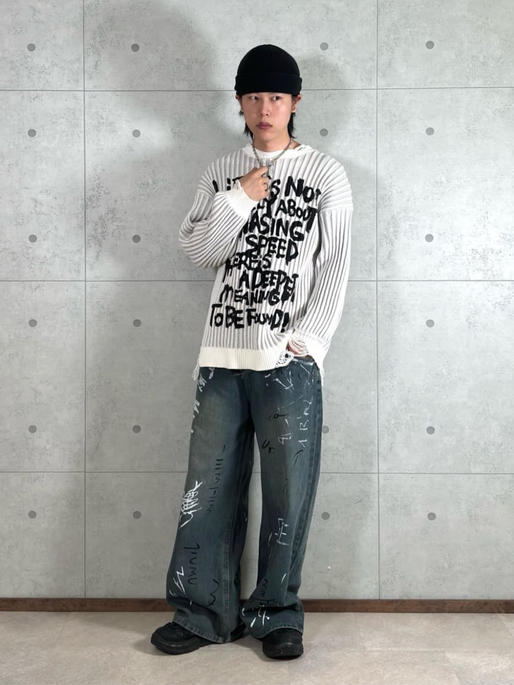WEGO(WEGO STAFF)のデニムパンツ「ペイントデニムパンツ」を使ったコーディネート