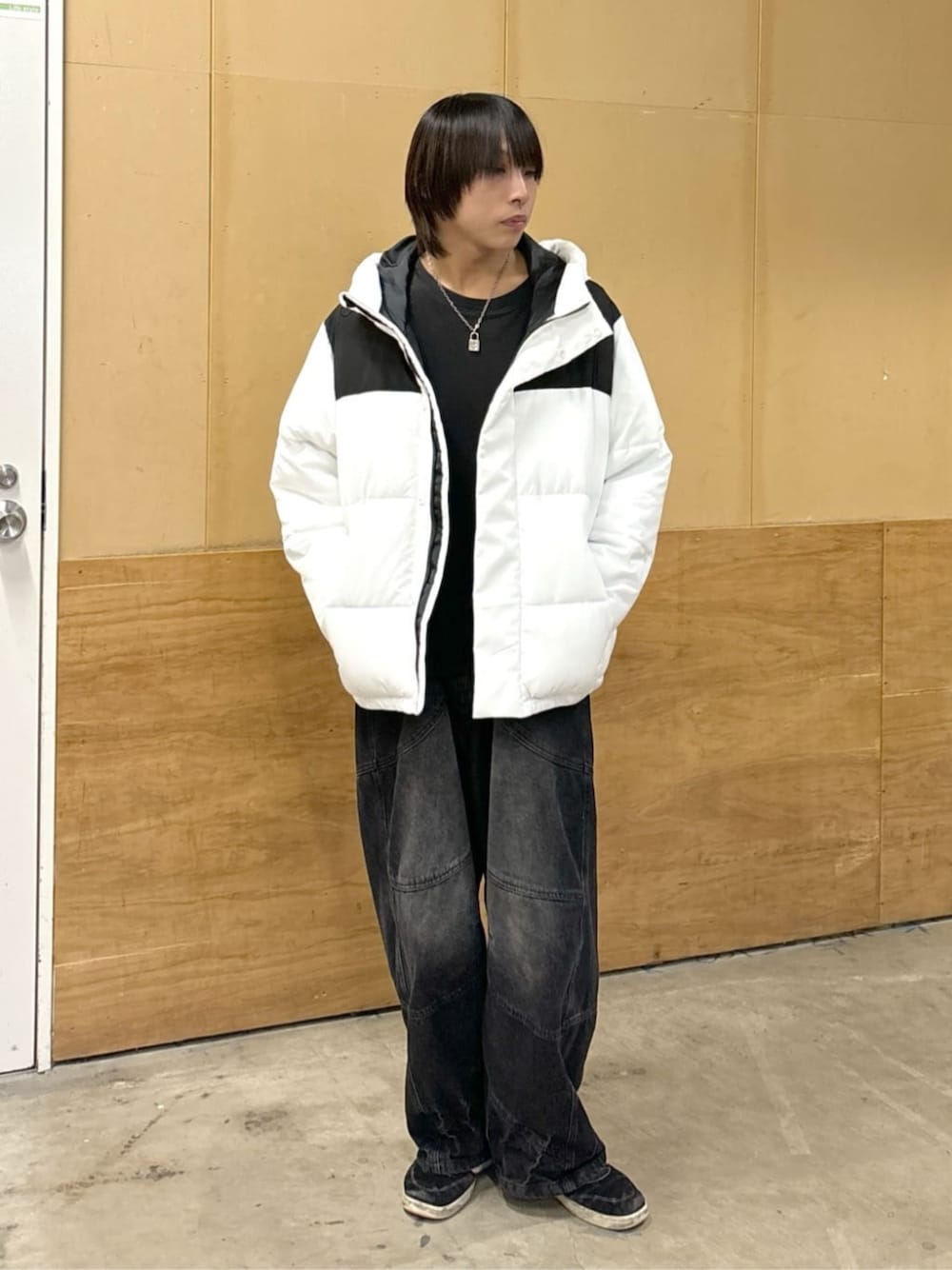 WEGO(WEGO STAFF)のデニムパンツ「SHORT ROUND/スーパービッグバレルレッグデニムパンツ」を使ったコーディネート