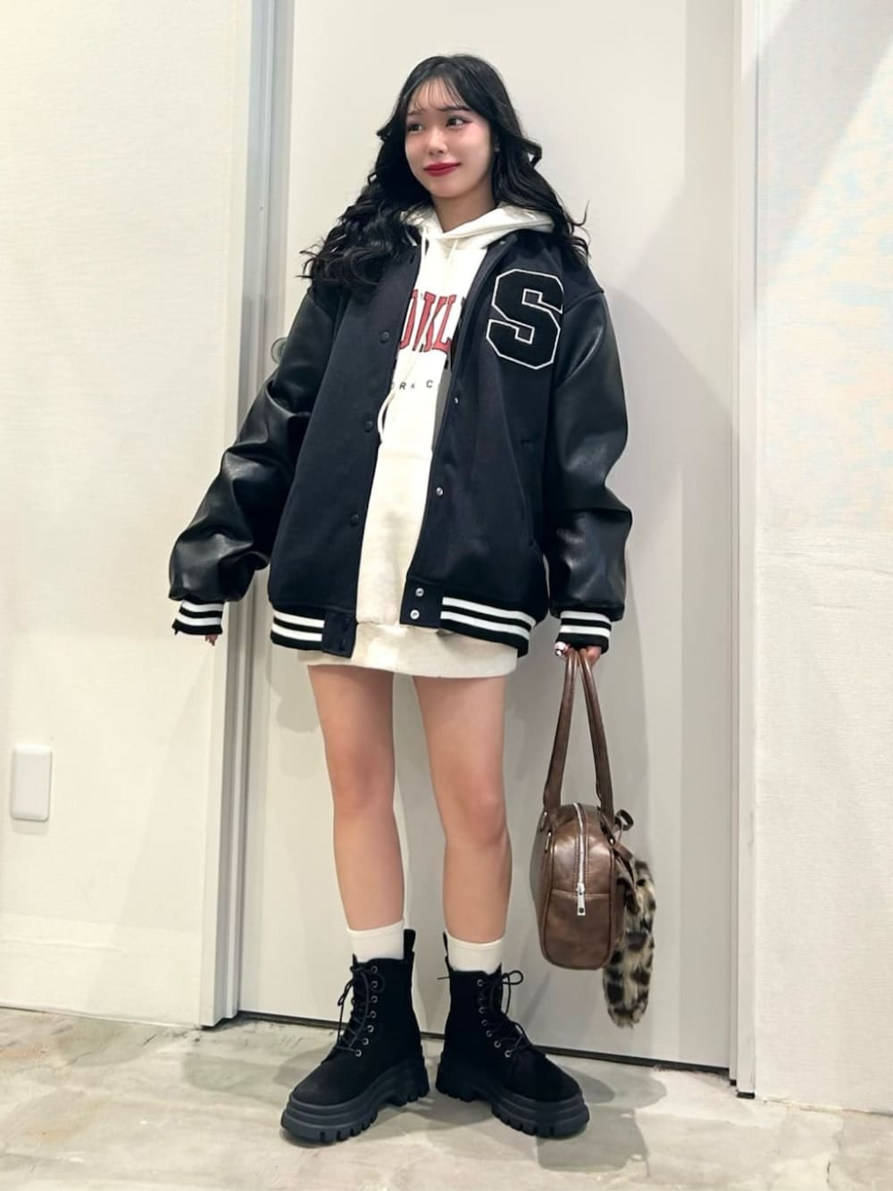 ストリートコーデ😈🎧 ◎バックナンバリングビッグスタジャン ・Fサイズ 新作のナンバリングスタジャン✨️ オーバーサイズでだぼっと着れます.ᐟ.ᐟ バックスタイルもロゴが目立って可愛い!