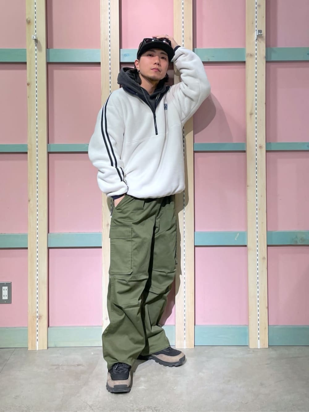 身長168cm/足のサイズ26.5cm/骨格ウェーブ ストリートコーデになります!! おすすめポイントはストリートスタイルにスポーティーミックスで合わせられるフリースです!!