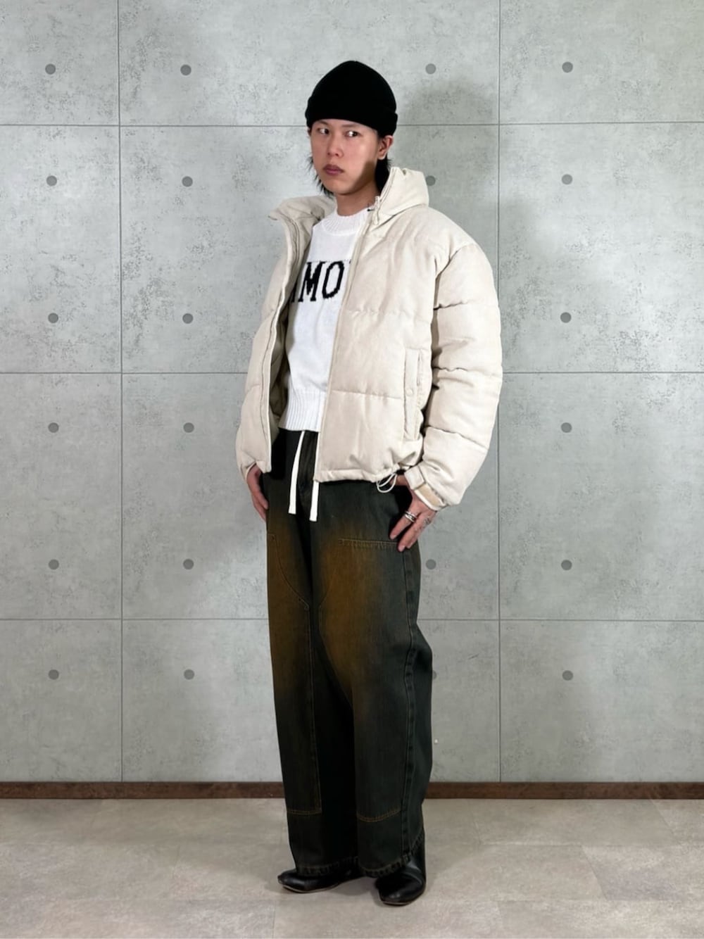 防寒性とデザイン性の高いパディングジャケット。 着丈、身幅にゆとりをもたせ、ビッグシルエット仕様でデザイン性に優れた1着に。 首には高めのスタンドカラーとフロントはジップ仕様でコーデュロイの素材なので高い防寒機能を備えています。 ドローコード入りでシルエットも変えられます!