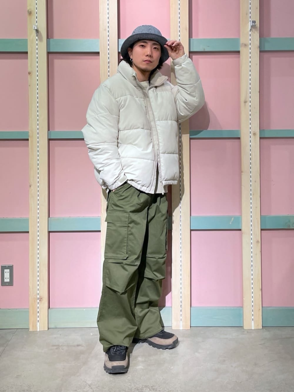 身長168cm/足のサイズ26.5cm/骨格ウェーブ カジュアルストリートコーデになります!! おすすめポイントは男女問わず使える中綿ブルゾンです!!
