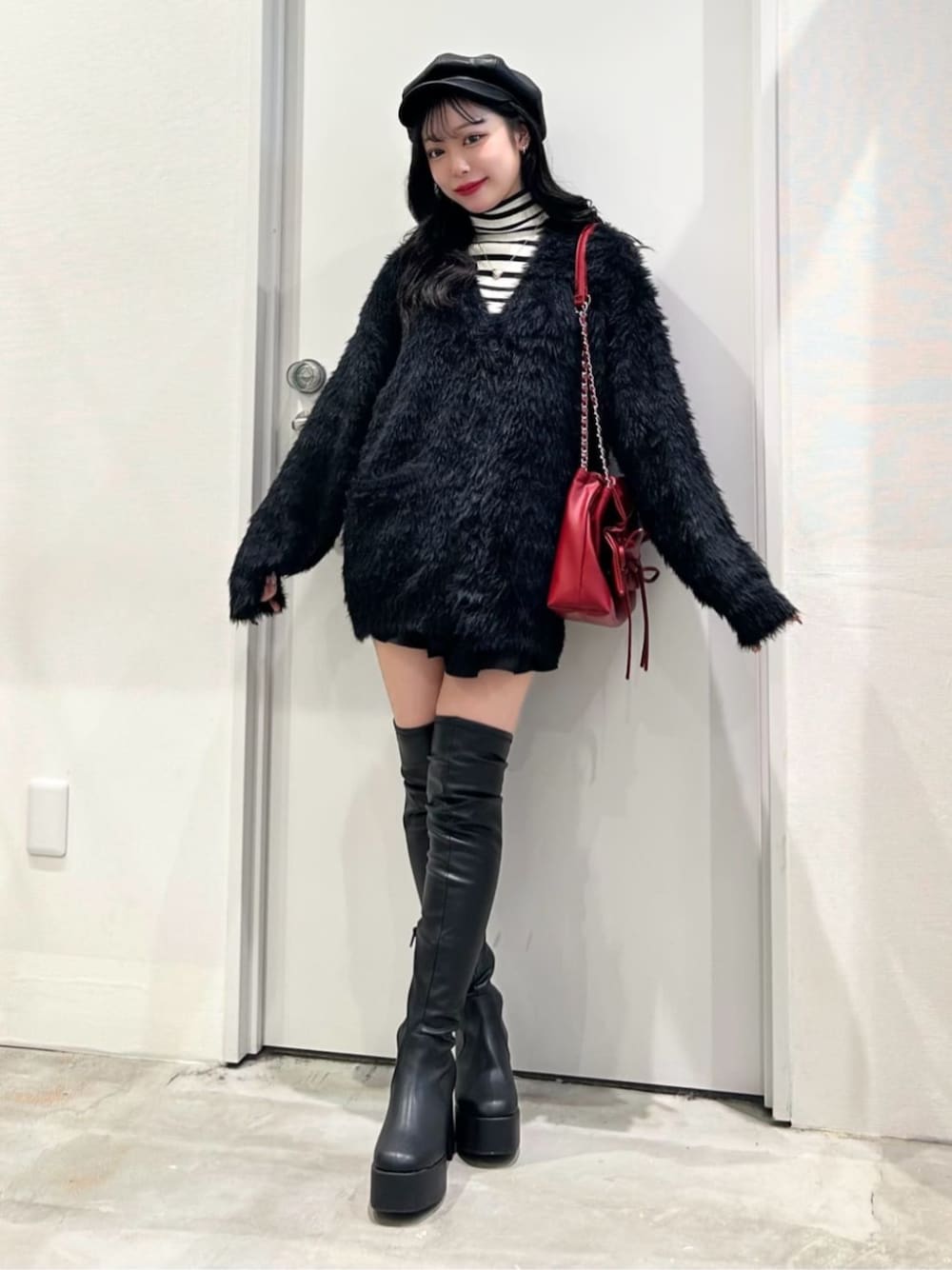 大人っぽコーデ👢🖤⟡.· ◎ニーハイブーツ ・Mサイズ 美脚効果🙆🏻♀️◎のニーハイブーツ.ᐟ.ᐟ 足にフィットしてくれるのでズレ落ちる心配もゼロ🫢💞 履くだけでトレンド感抜群のスタイルに👀🌟