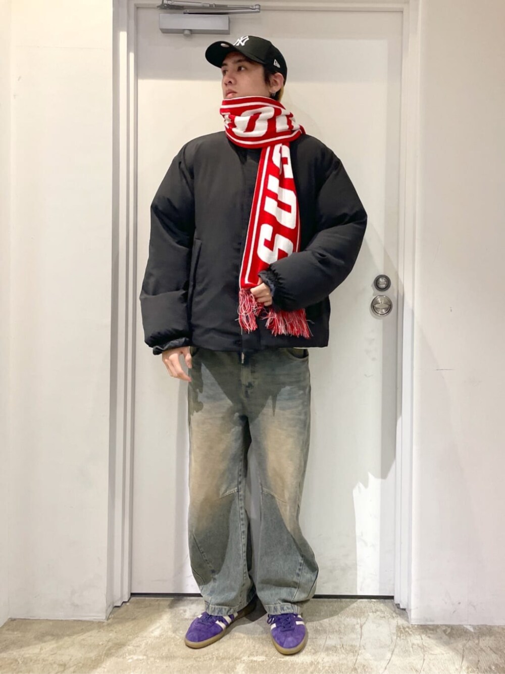 とりあえずこのコーデが今年の冬乗り切れて おしゃれになんでも合わせれるでしょ! コーデのご紹介! パディングブルゾンはメンズアイテムですがSサイズからあるのでレディースの方にもとくにおすすめで店頭でも大人気!! あとはニットこれまじでおすすめ! デザイン多数あるので友達、恋人、家族で オソロもありです! ストールは差し色にもなるのでもってこいのアイテムで全部おすすめです!