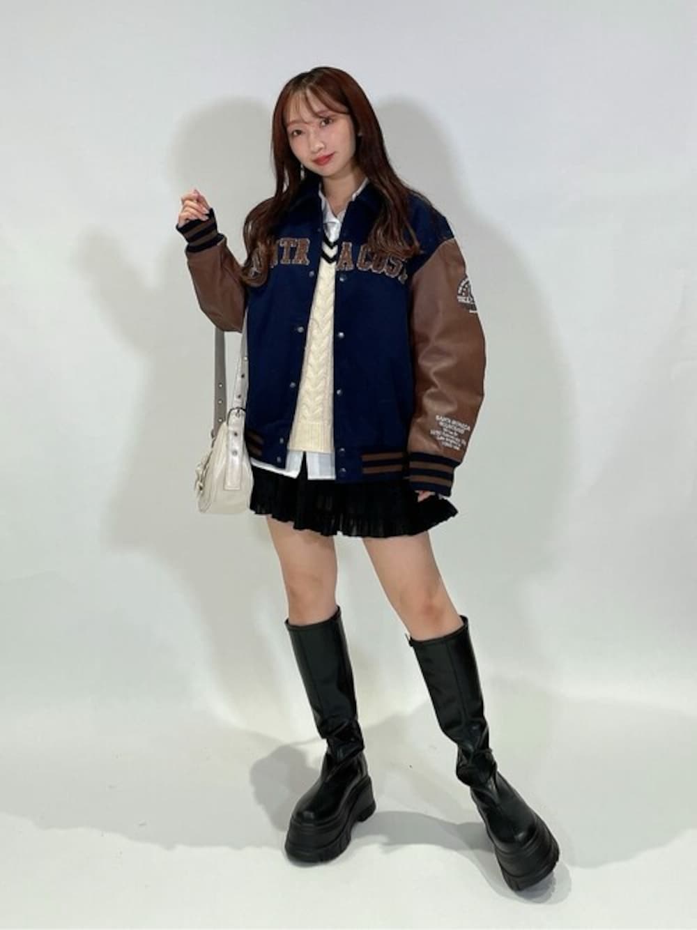 ガーリーなアイテムとカジュアルなアウターを合わせてカジュアルガーリーなコーデに✨️