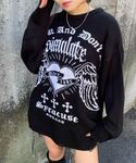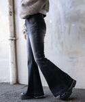生地分厚めのダメージニット! サブカル、Y2Kにピッタリ!!★ フレアパンツは切りっぱなしの裾で 足長効果やばいです!!⭐︎٩(๑❛ᴗ❛๑)۶