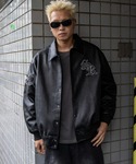 WEGO(WEGO STAFF)のライダースジャケット「SHORT ROUND/エコレザーグラフィックジャケット」を使ったコーディネート