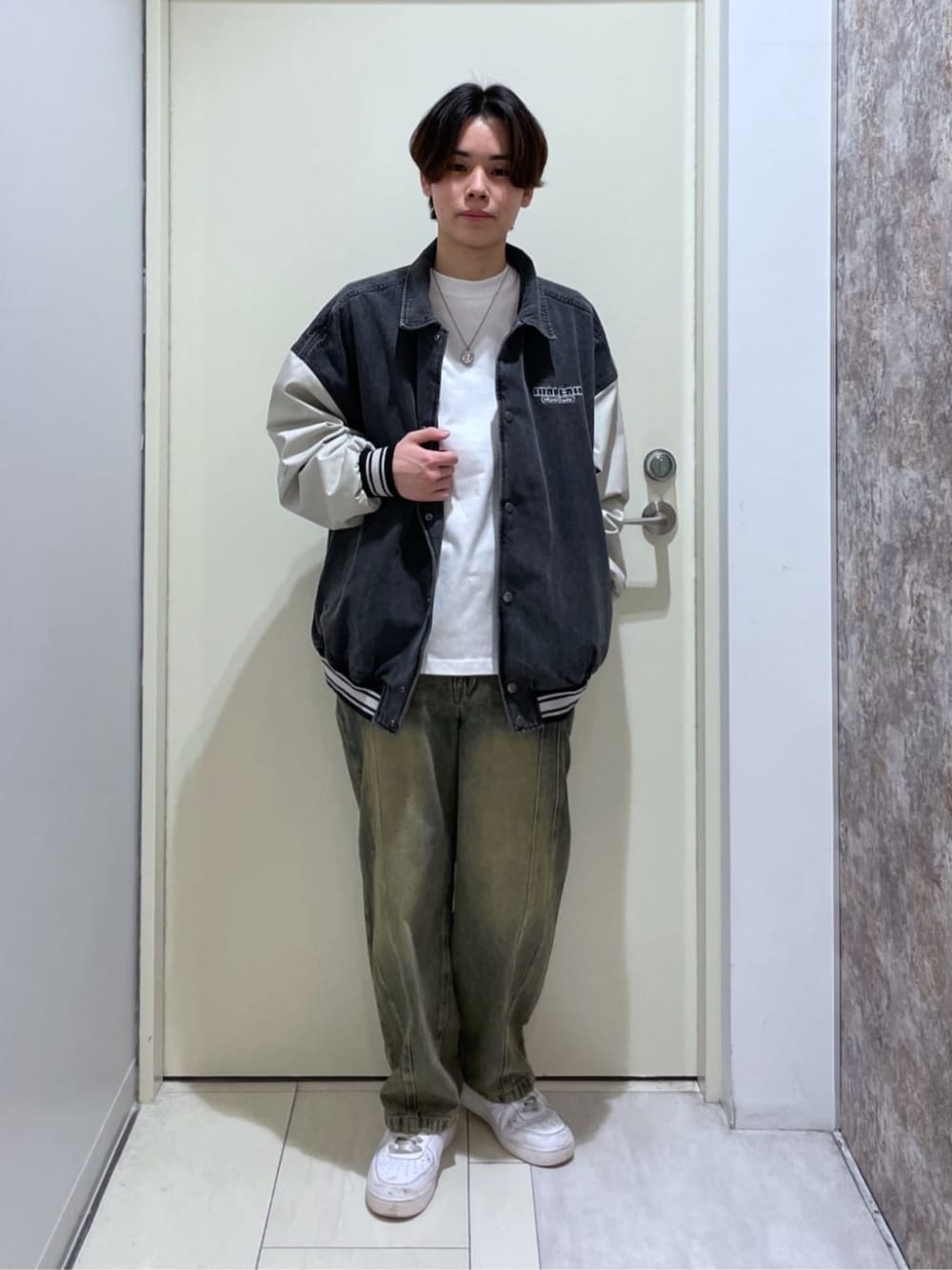 デニムスタジャンとアソートグラフィックT、イージー3Dバレルレッグデニムパンツを合わせたコーデです!! 『デニムスタジャン』はパーカーやロンTと相性が良く、この1枚あれば羽織で簡単にコーデを組めるアイテムです!! 『アソートグラフィックT』は1枚でもインナーとしても使い勝手がよく、これからの季節必ず活躍するので持っておきたいアイテムです!! 『イージー3Dバレルレッグデニムパンツ』は立体的なシルエットがかっこよく無難に色々なトップスと合わせやすくコーデ全体がかっこよく決めれるアイテムです!!