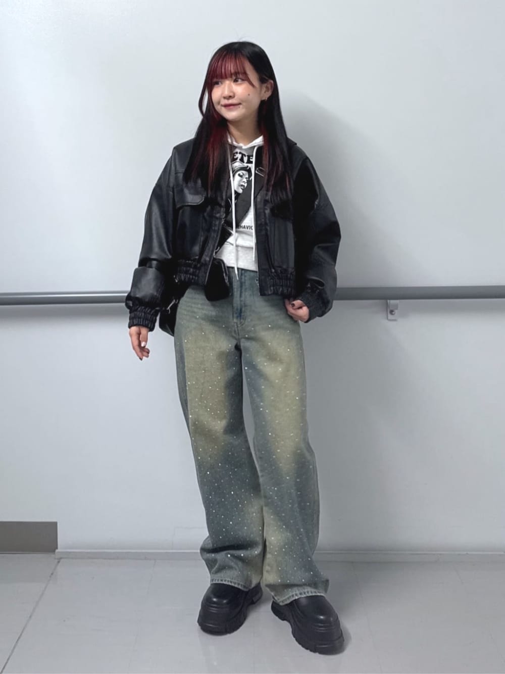 ショート丈のトップスとアウターなので、 脚長効果抜群です✌🏻🖤 153cm/骨格ストレート/ブルベ