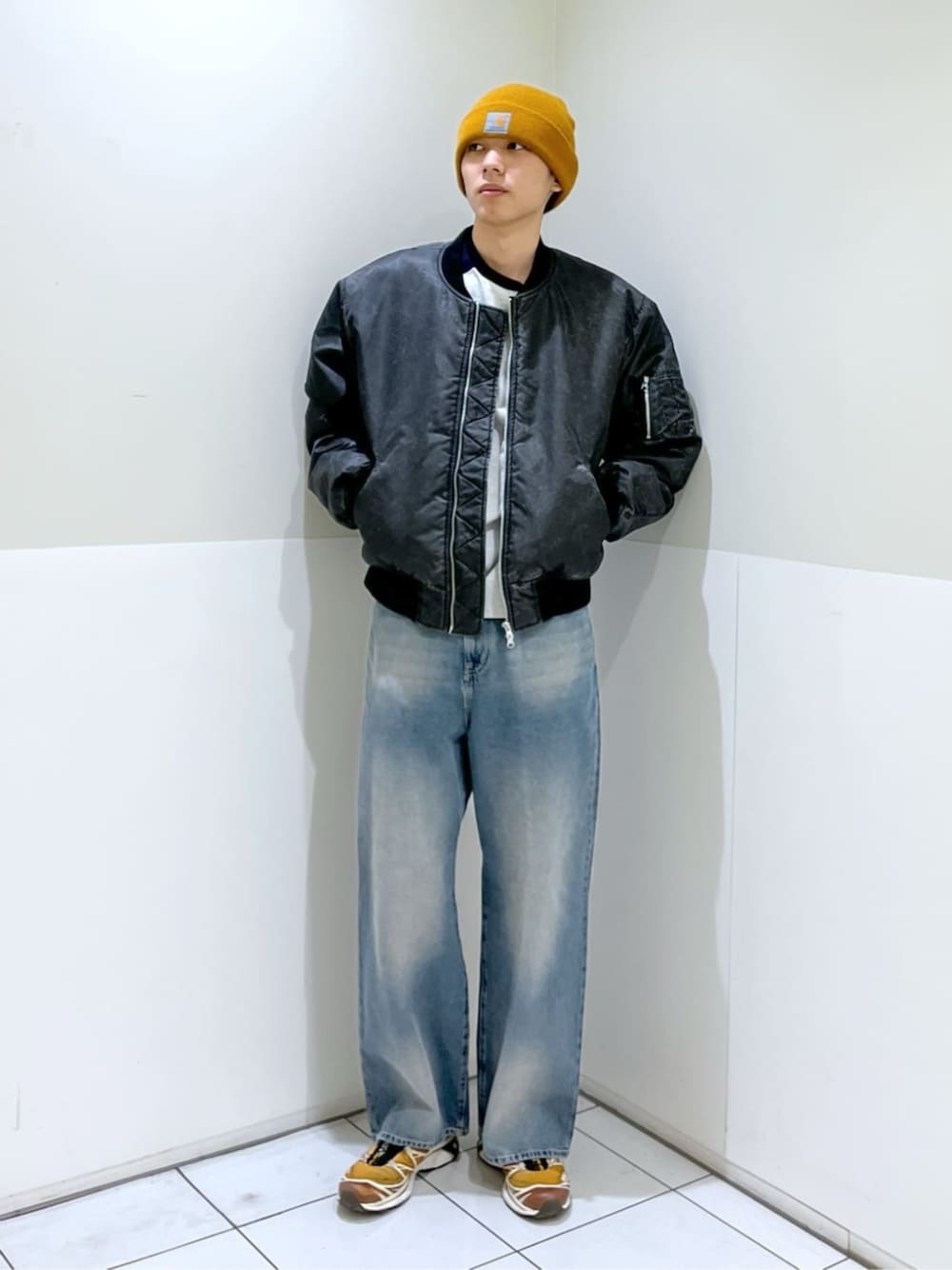 ストリートスタイルを極めるなら、フェードナイロンMA-1とラグランハートグラフィックT(LS)、バギーデニムパンツの3点セットが必見!軽やかなナイロン素材が特徴のMA-1は、どんなシーンにもマッチし、洗練された印象を与えます。 さらに、バギーデニムパンツは、古着男子にぴったりのリラックス感とトレンド感を兼ね備えています!