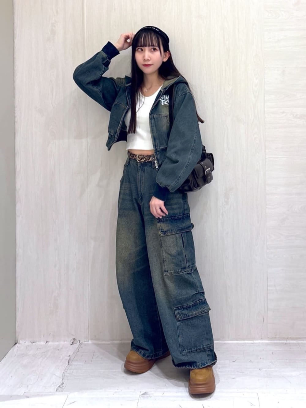 ヴィンテージウォッシュショートフードブルゾンとヴィンテージウォッシュバギーカーゴパンツを合わせたセットアップコーデです!!!