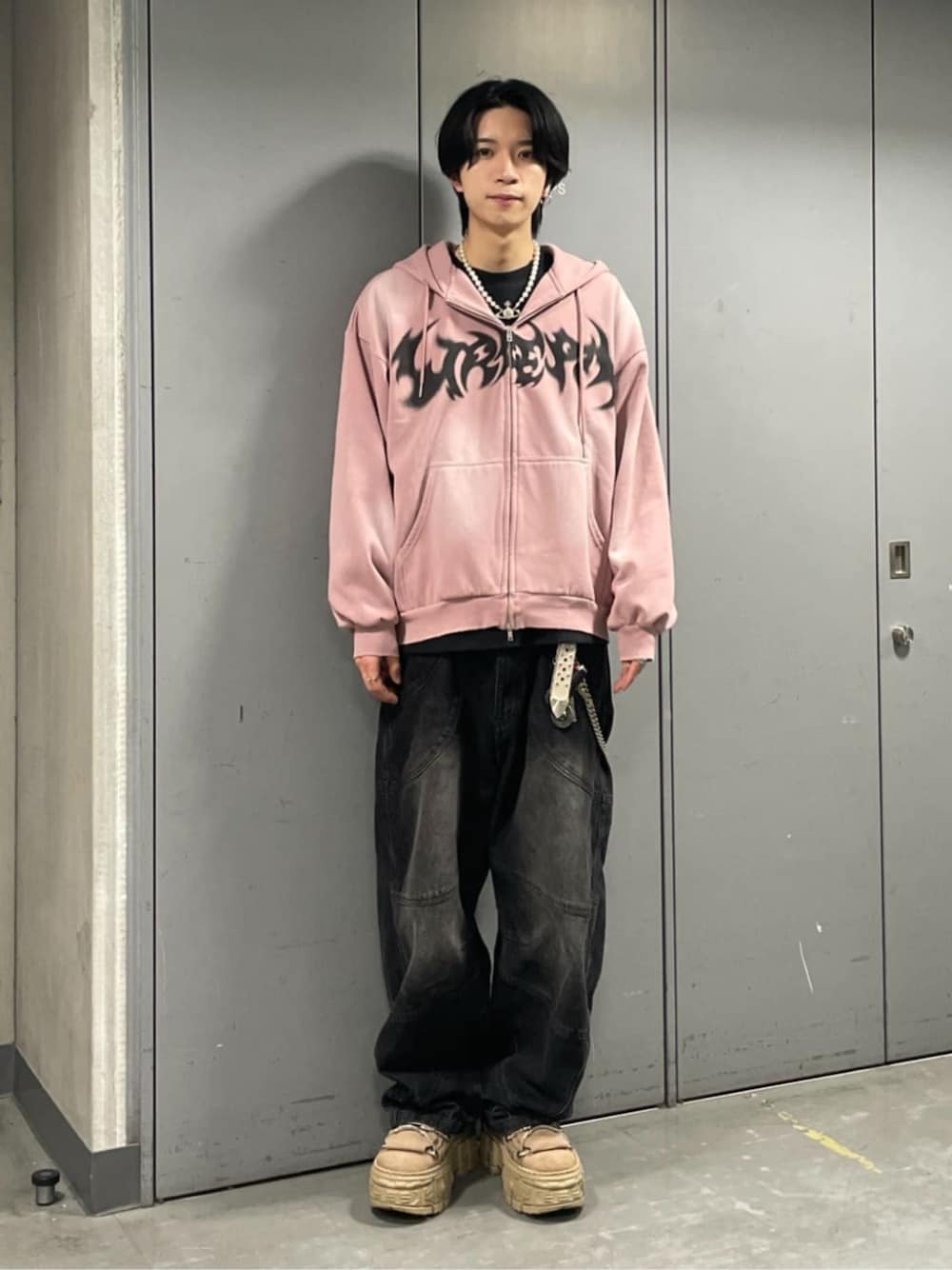 WEGO(WEGO STAFF)のデニムパンツ「SHORT ROUND/スーパービッグバレルレッグデニムパンツ」を使ったコーディネート