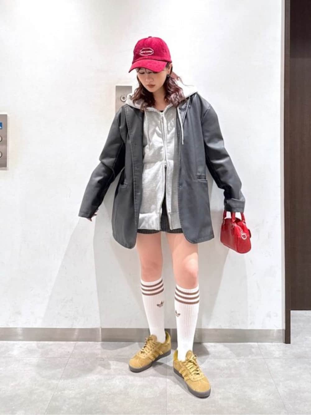 メンズのオーバーサイズジャケット♩ レザーなのに軽くて着心地◎ インナーに合わせているパーカーは、フィンガーホールデザインでおしゃれ♩ ダブルジップデザインなので着回しも◎