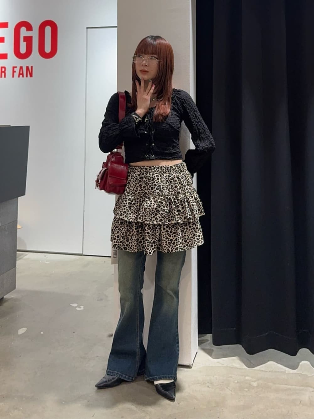 肌見せしたくない方にはレイヤードスタイルで、一癖ある可愛いコーデがおすすめです!!💖 着用している、ハイウエストストレッチフレアデニムパンツは ストレッチ性があって履き心地も最高です♪ 是非!Checkしてみてね☝🏻☝🏻