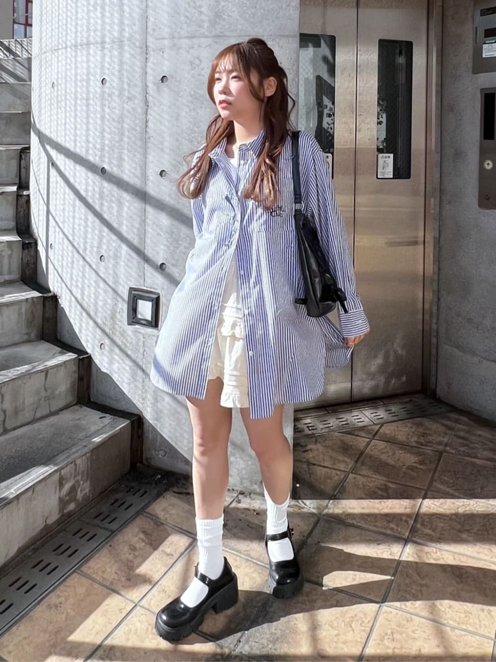WEGO(WEGO STAFF)のシャツ/ブラウス「WEGO/刺繍ストライプBIGシャツ」を使ったコーディネート