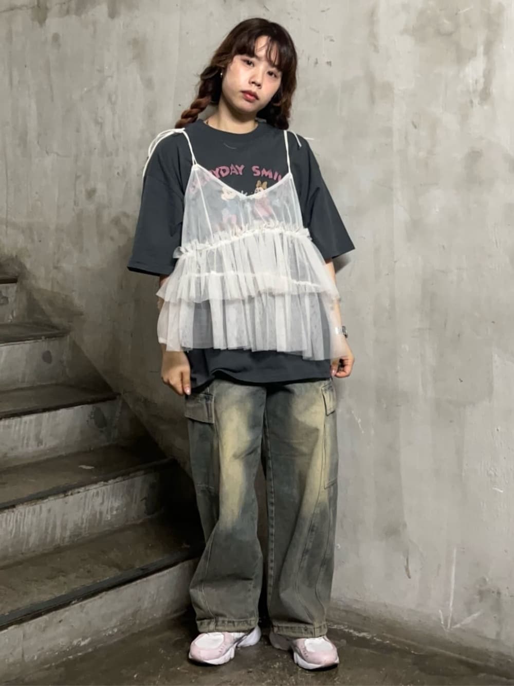 WEGO(WEGO STAFF)のキャミソール「【PHILLY】チュールフリルキャミソール」を使ったコーディネート