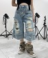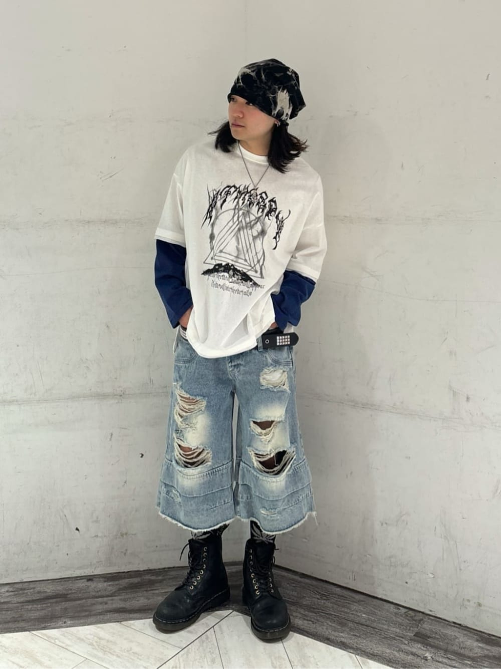ココ最近ずっと流行ってるY2K要素のある アイテムたちで グランジストリートコーデ を組んでみました! やっぱり1番のおすすめは ダメージワイドショーツですね! この丈感にダメージ感そしてカラー文句なし 更にベルトを付ける所が2箇所にあるので Y2Kのようなベルト2個つけもできます!! その上に平成感のあるボーダーレイヤードT こちらもプリントがめちゃくちゃ可愛く 程よい大きさになっているので相性抜群です! ビーニーはシンプルな無地にしないで ボーダーと合わせ 敢えて柄物を取り入れることでコーデに一体感 が出ます!! 普段のストリート系統に飽きた方 こういった一癖、二癖のあるストリートコーデ を組んでみてはいかがでしょうか!?