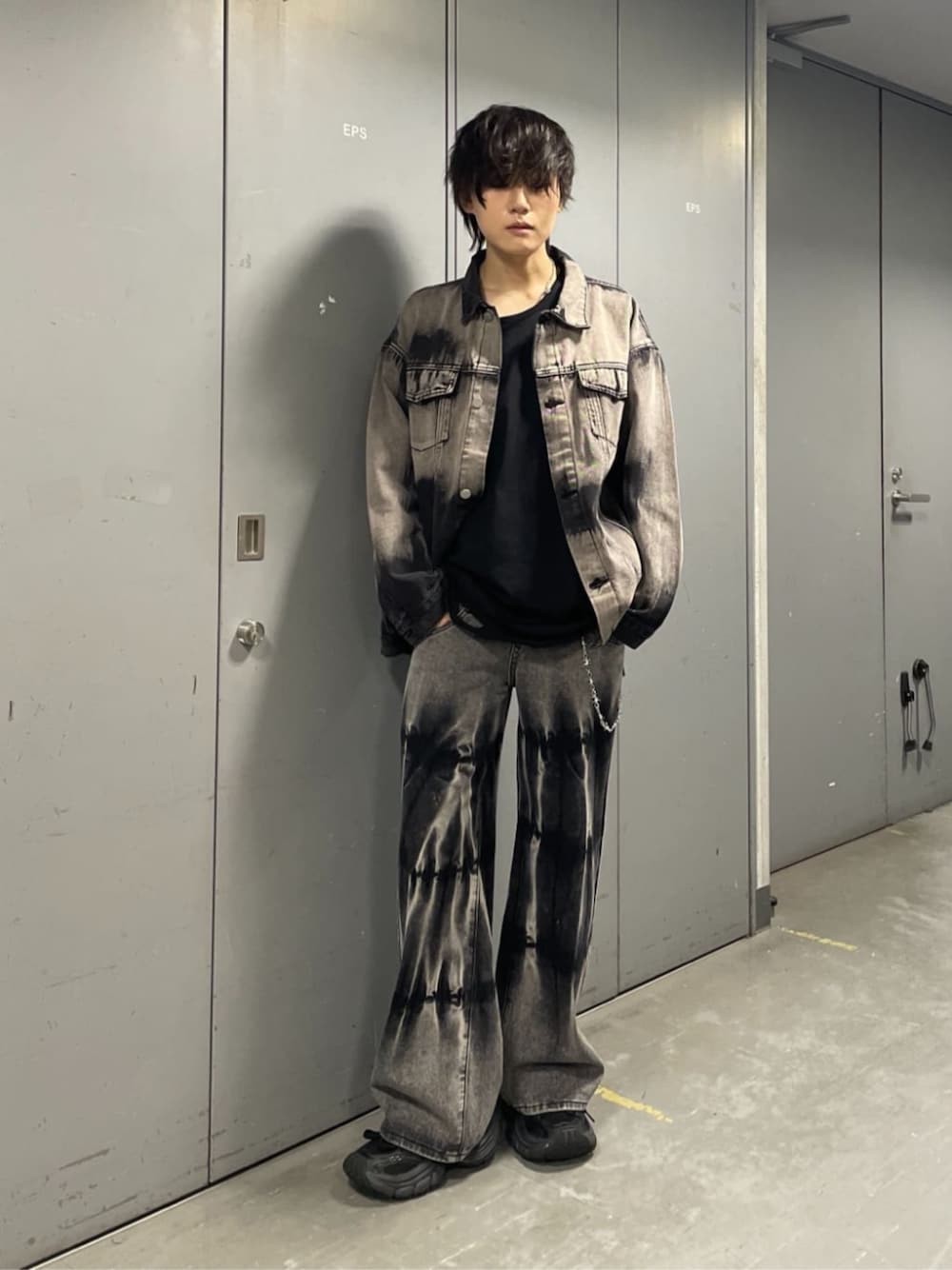 色ムラが目を惹くデニムを上下で合わせてみました‼️ セットアップでは無いのですが、色味が同じである為、統一感があります🙌 是非参考にしてみてください😊