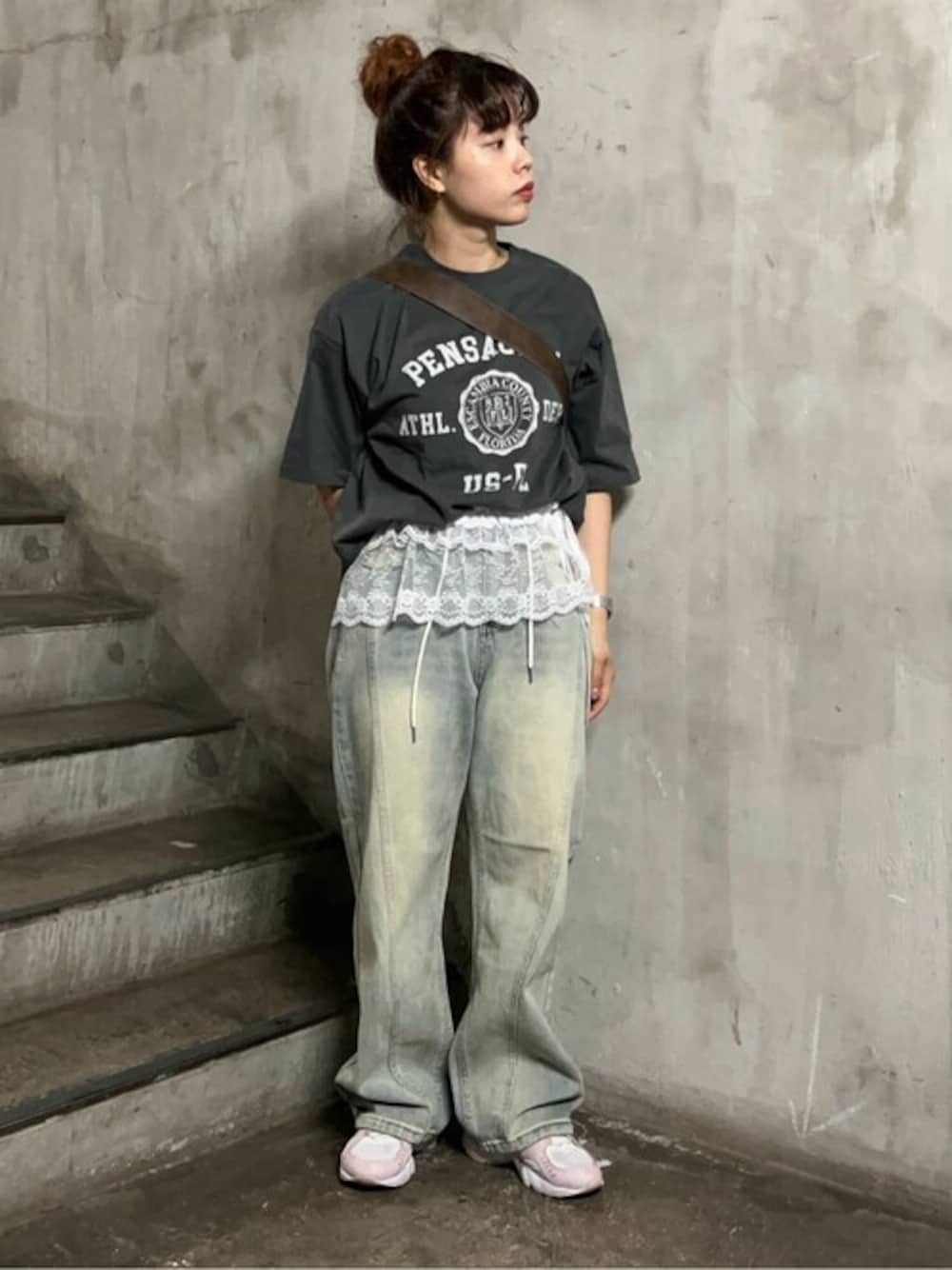 WEGO(WEGO STAFF)のデニムパンツ「DISPARK/ウォッシュストリングデニム」を使ったコーディネート