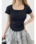 ドット柄でトレンド感のあるTシャツ‼︎ スクエアネックで顔周りをスッキリ見せ◎