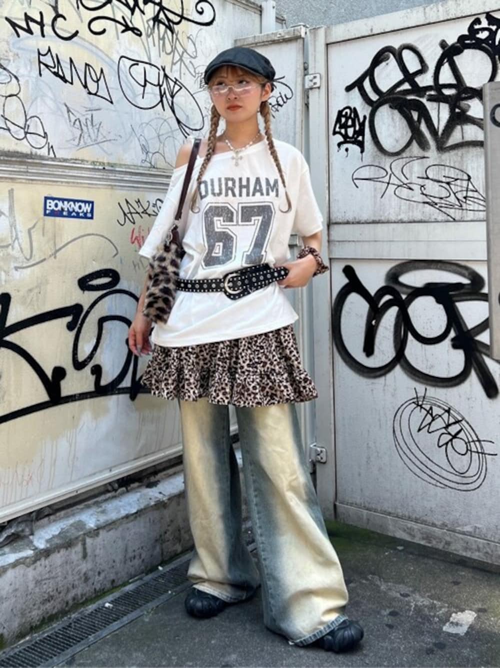 WEGO(WEGO STAFF)のTシャツ/カットソー「WEGO/2WAYグラフィックワンショルBIGT」を使ったコーディネート